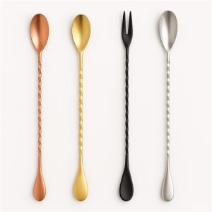 Cuillères de bar torsadées pour un mélange fluide et maîtrisé. Modèles Teardrop, Hoffman, classiques ou avec fourchette, disponibles en acier, or, cuivre et noir mat. L’outil indispensable pour les cocktails en mixing glass.
